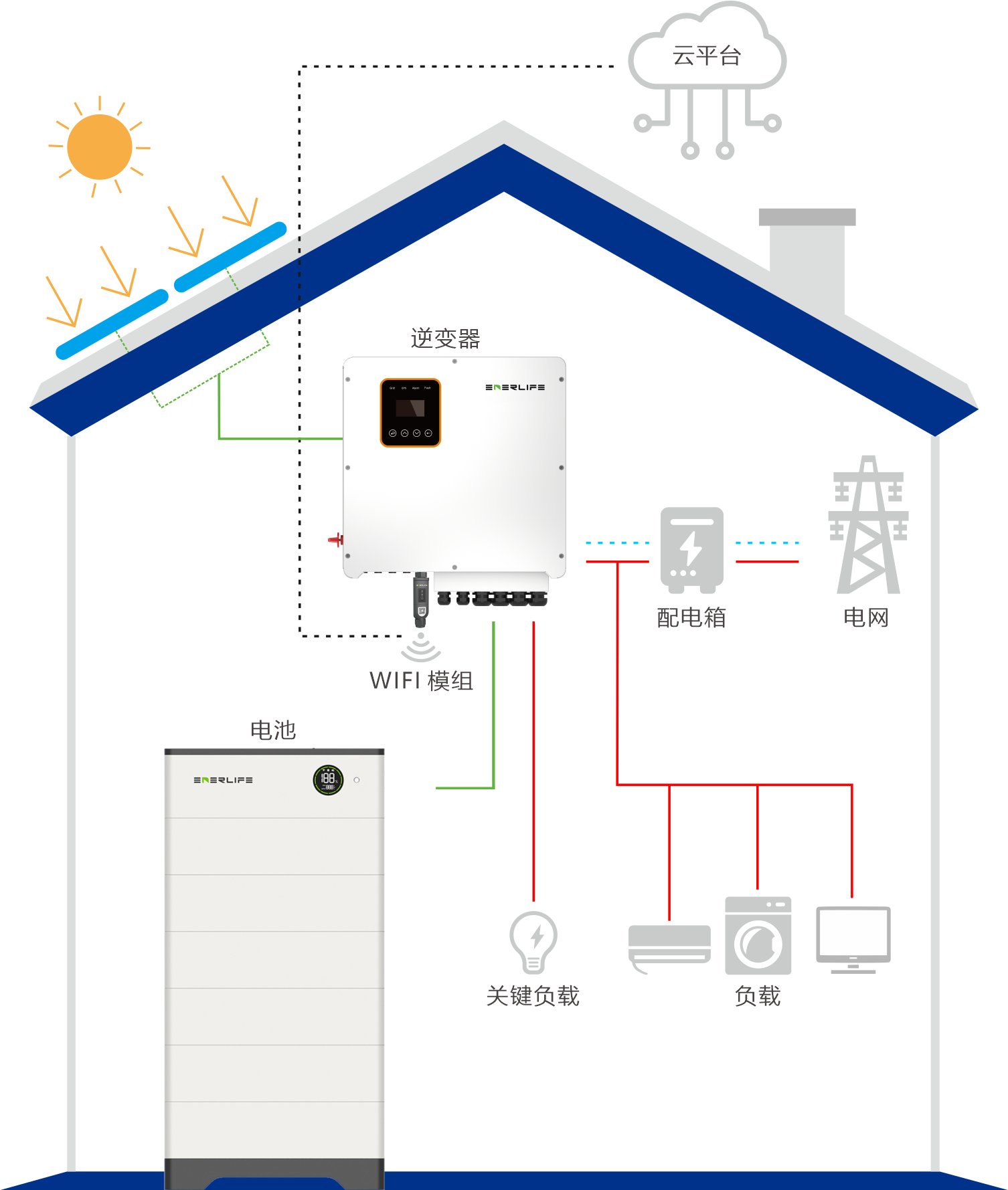 和而泰數(shù)智新能家庭高壓儲能解決方案包括由儲能逆變器和高壓電池儲能系統(tǒng)構(gòu)成。該系統(tǒng)采用模塊化結(jié)構(gòu),安裝簡便,可滿足不同的家庭能源需求,為用戶提供可靠而持久的電力支持,通過云管理平臺實現(xiàn)整個儲能系統(tǒng)的實時遠程監(jiān)控,提供更智能、個性化的能源管理服務(wù),助力家庭實現(xiàn)更為綠色和經(jīng)濟的能源消耗